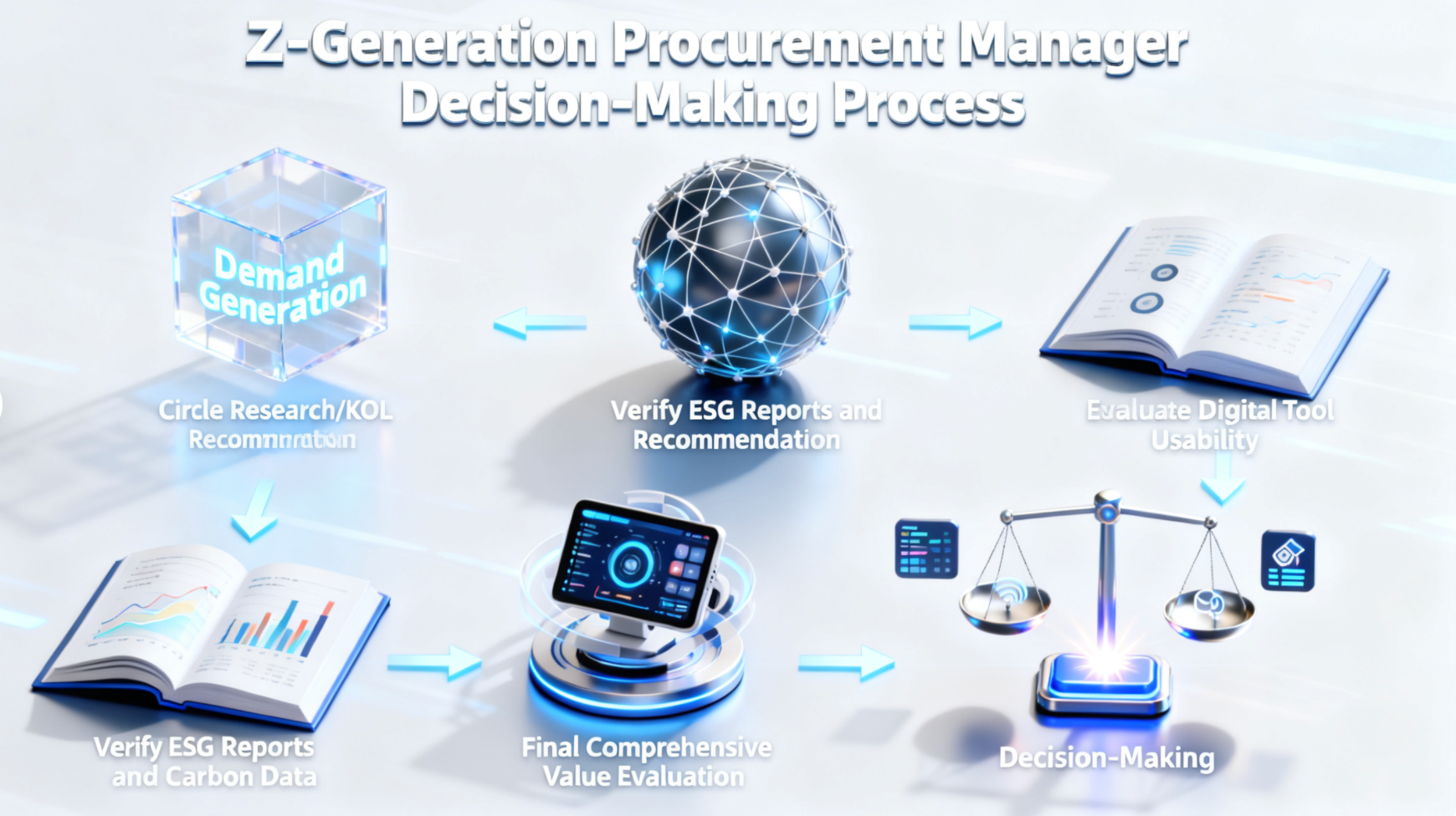 (Başlık: Z Kuşağı karar süreci: Geleneksel doğrusal tedarikin yerini çok adımlı, değer odaklı bir yaklaşım alır.)