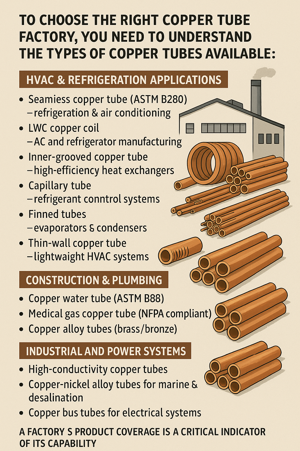 Çok sayıda bakır boru üreticisi arasından uygun bir tedarikçi/ortak fabrika seçerken aşağıdaki boyutlara odaklanılması tavsiye edilir: