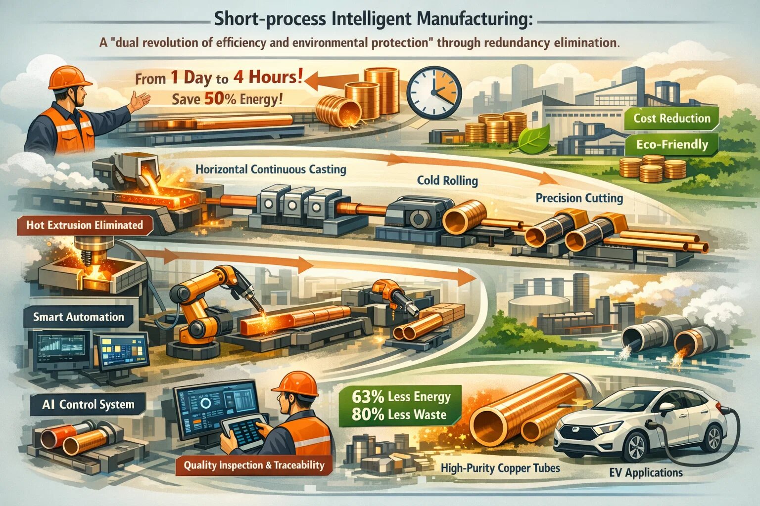 "Önceden bir parti hassas bakır boru üretmek tam bir gün sürüyordu, ancak şimdi bunları yalnızca 4 saatte gönderebiliyoruz ve elektriğin yarısından tasarruf ediyoruz!" Taicang, Jiangsu'daki JinXin Bakır Boru atölyesinin başkanı, tam otomatik üretim hattına işaret ederek şöyle konuştu: Şirket ve Central South Üniversitesi tarafından ortaklaşa geliştirilen "bakır alaşımlı borular için kısa proses üretim teknolojisi" 2025 yılında ulusal düzeyde sertifikayı aldı. Bu ekstrüzyonsuz "içi boş külçelerin yatay sürekli dökümü - soğuk haddeleme - çekme" işlemi, geleneksel üretim yöntemlerinde tamamen devrim yarattı.