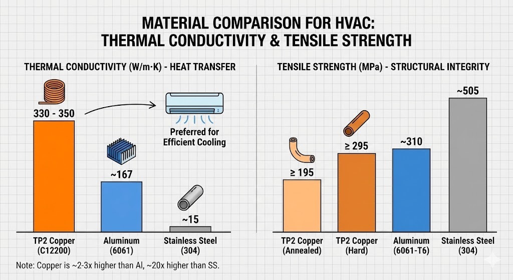 İster evlerimizi konforlu tutan klima ünitelerinde, ister güvenli su sağlayan tesisatlarda, ister yeni nesil elektrikli araçların soğutma sistemlerinde olsun, TP2 modern termal ve sıvı yönetiminin temel malzemesi olmaya devam ediyor. Yüksek basınç, yüksek sıcaklık veya yüksek verimli uygulamalar için malzeme seçerken TP2 (C12200) kanıtlanmış endüstri standardı olarak öne çıkar.