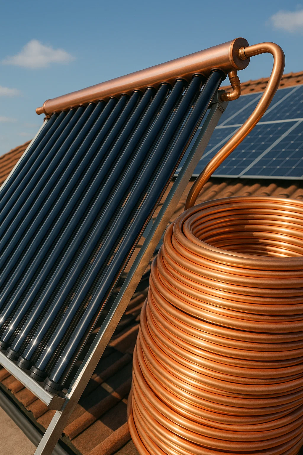 Yenilenebilir enerjiye olan talebin artmasıyla birlikte bakır borular güneş enerjisi termal sistemlerinde ön plana çıkıyor. Bakırın mükemmel ısı iletkenliği, onu güneş enerjisini toplamak ve suyu ısıtmak için termal enerjiye dönüştürmek için ideal bir malzeme haline getirir. Güneş kollektörlerinde bakır boruların kullanılması, verimliliği ve performansı artırarak geleneksel enerji kaynaklarına olan bağımlılığın azaltılmasına yardımcı olur ve daha yeşil, daha sürdürülebilir bir yaşama katkıda bulunur. Bakırın korozyona dayanıklı özellikleri, güneş enerjisi termal sistemlerinin uzun ömürlülüğünü ve güvenilirliğini sağlar.